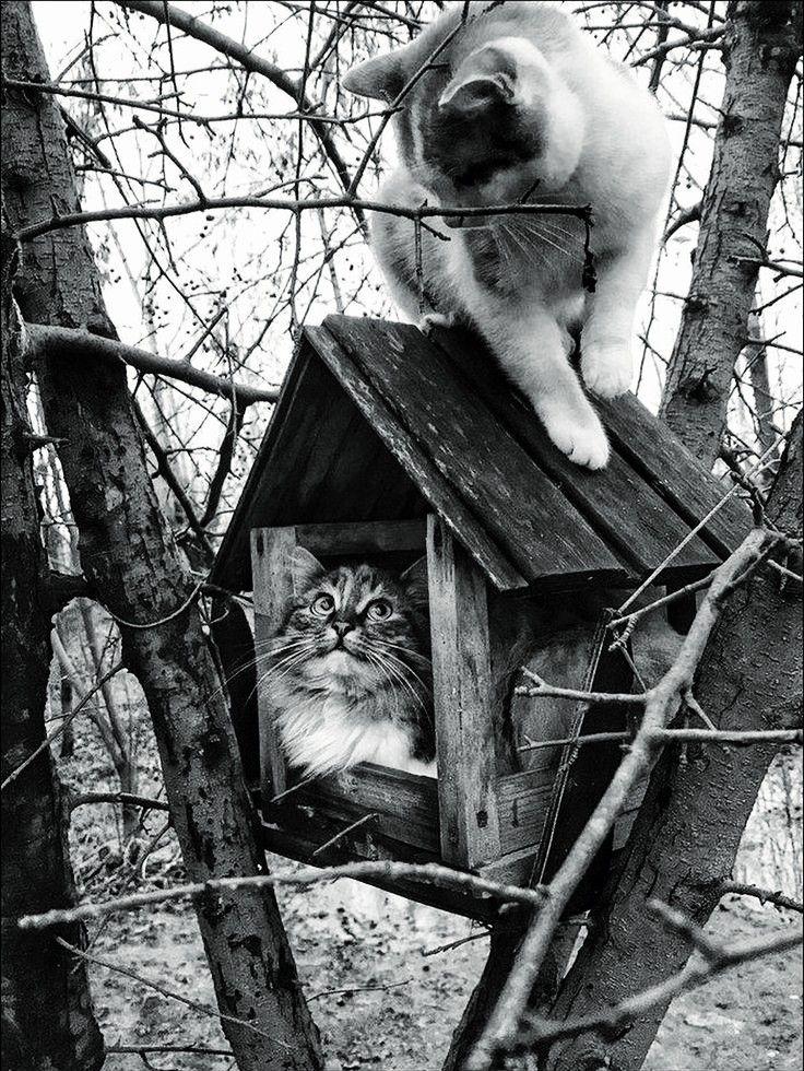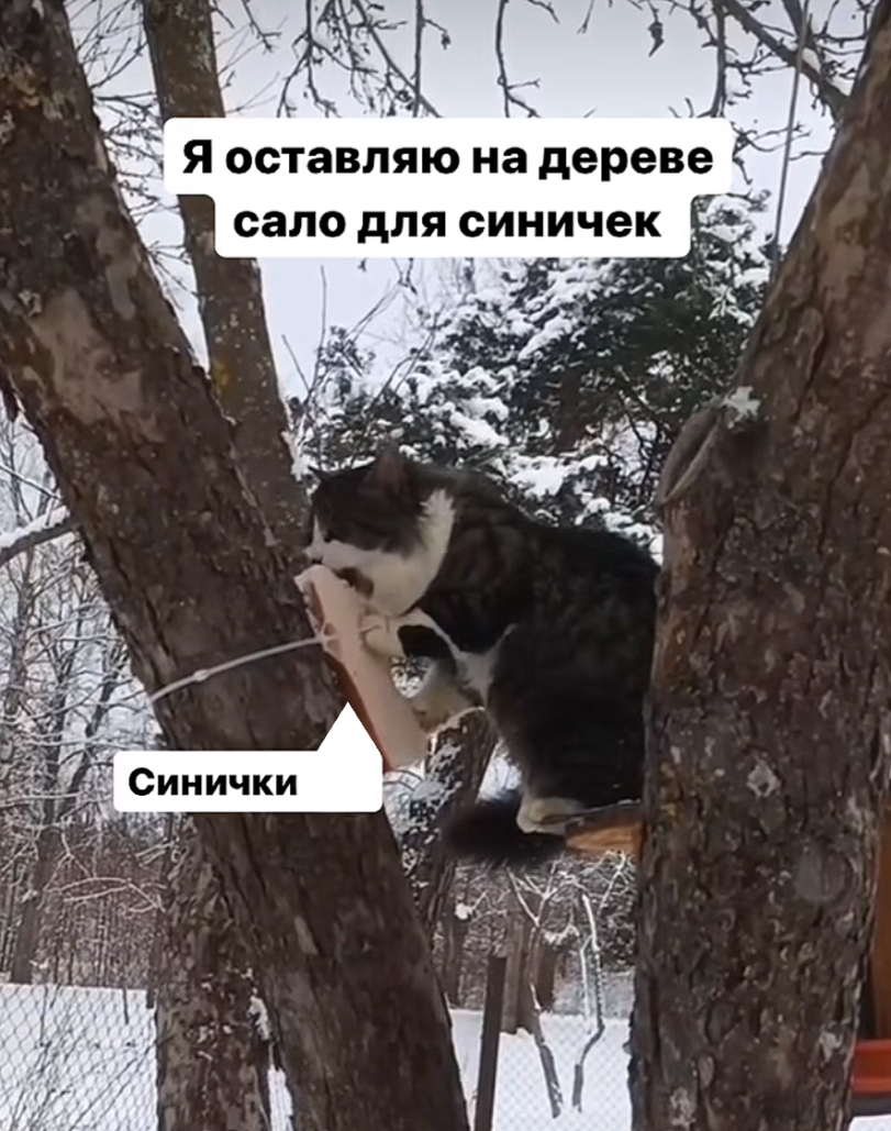 Штефан! Вы себя реабилитировали - чтобы котика никто не обидел, Вы уютно его устроили на дереве, поставили перед ним мисочку с едой, живи, котик, наслаждайся!