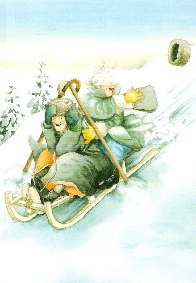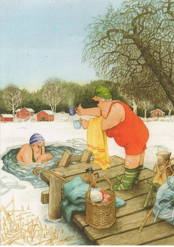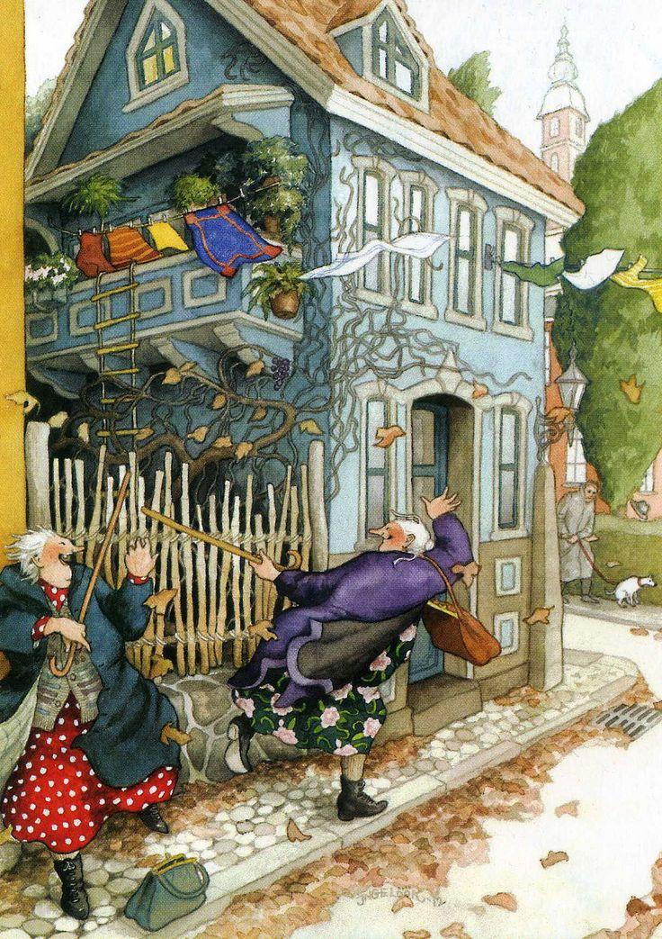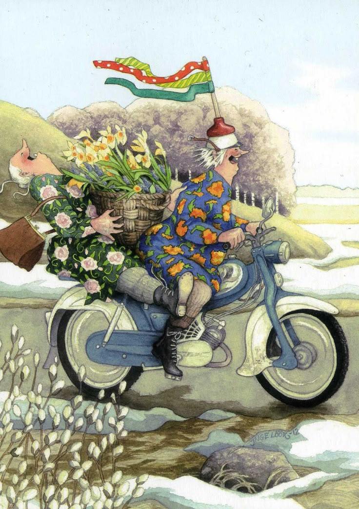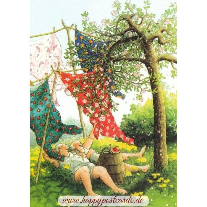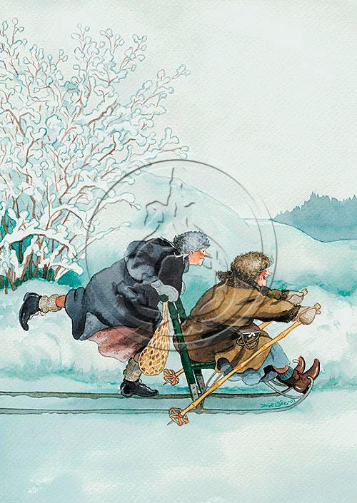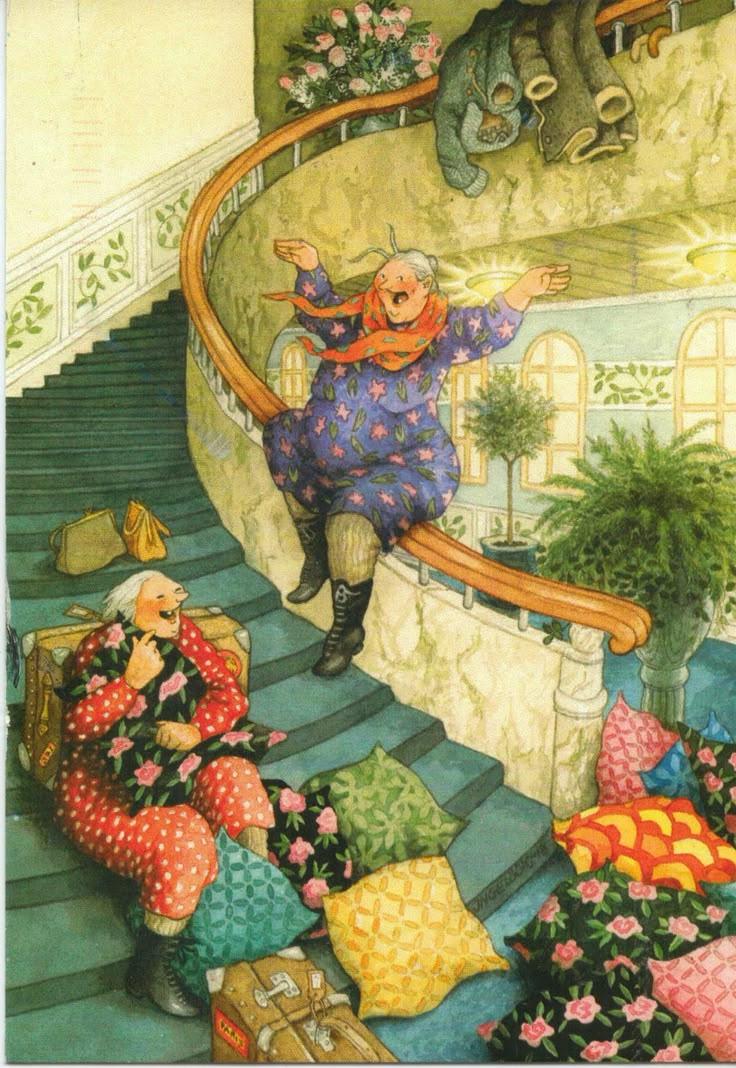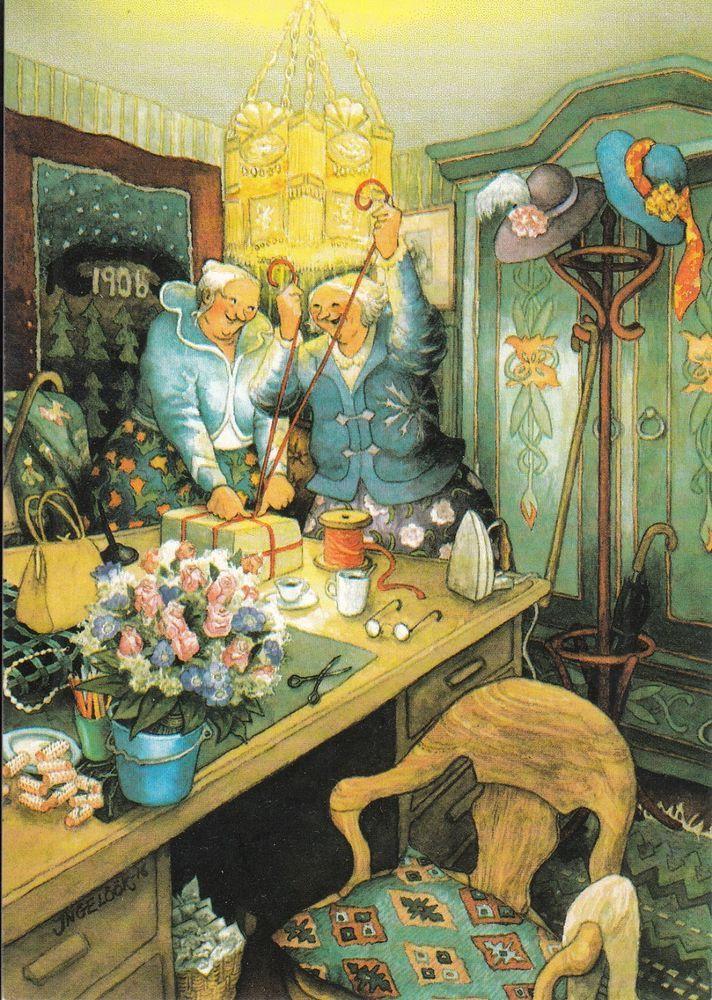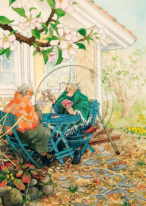 Особенно Инге удалась серия открыток изображающих веселых и неунывающих старушек, излучающих радость, непреклонных и беззаботных в своем возрасте. Эти не желающие стареть бабушки в душе остаются такими же молодыми и задорными, как в юности!