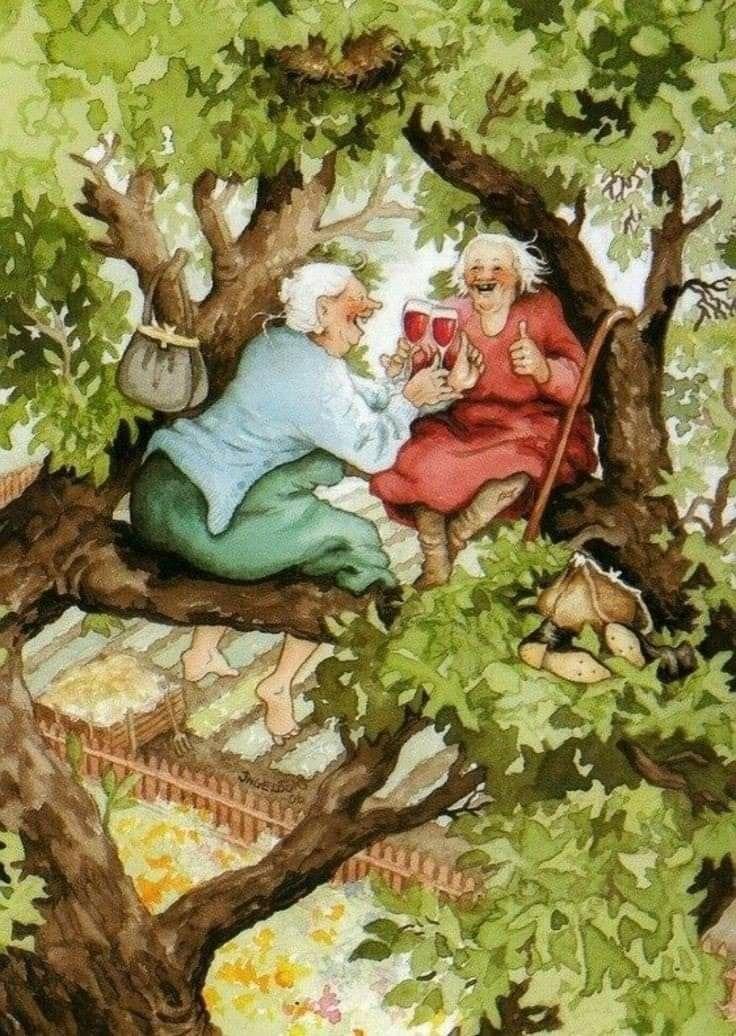 Героини Алли и Фифи живут по принципу: «Время — это не деньги, и тратить его — не грех». Они наслаждаются моментом, будь то лазание по деревьям с бокалом вина, танцы на столе или плавание под зонтиками. Они не доживают отпущенный им остаток лет, а живут на полную катушку, получая удовольствие от общества друг друга и маленьких радостей, которые сами себе же и устраивают.