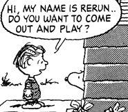Изначально Рерун был задуман как второстепенный персонаж вселенной «Peanuts», однако со временем успел стать одним из главных и любимых героев комикса. Рерун был впервые упомянут комиксе, вышедшем 23 мая 1972, именно этот день считается официальным Днем рождения мальчика. Таким образом, Рерун стал самым младшим персонажем Peanuts. Немногословные, но забавные реплики Реруна стали его визитной карточкой. Так, в одной из серий Люси с грустью заявляет, что за день не произошло ничего интересного. В этот самый момент Рерун поднимает свою детскую бутылочку и заявляет: «Я выпью за это!»