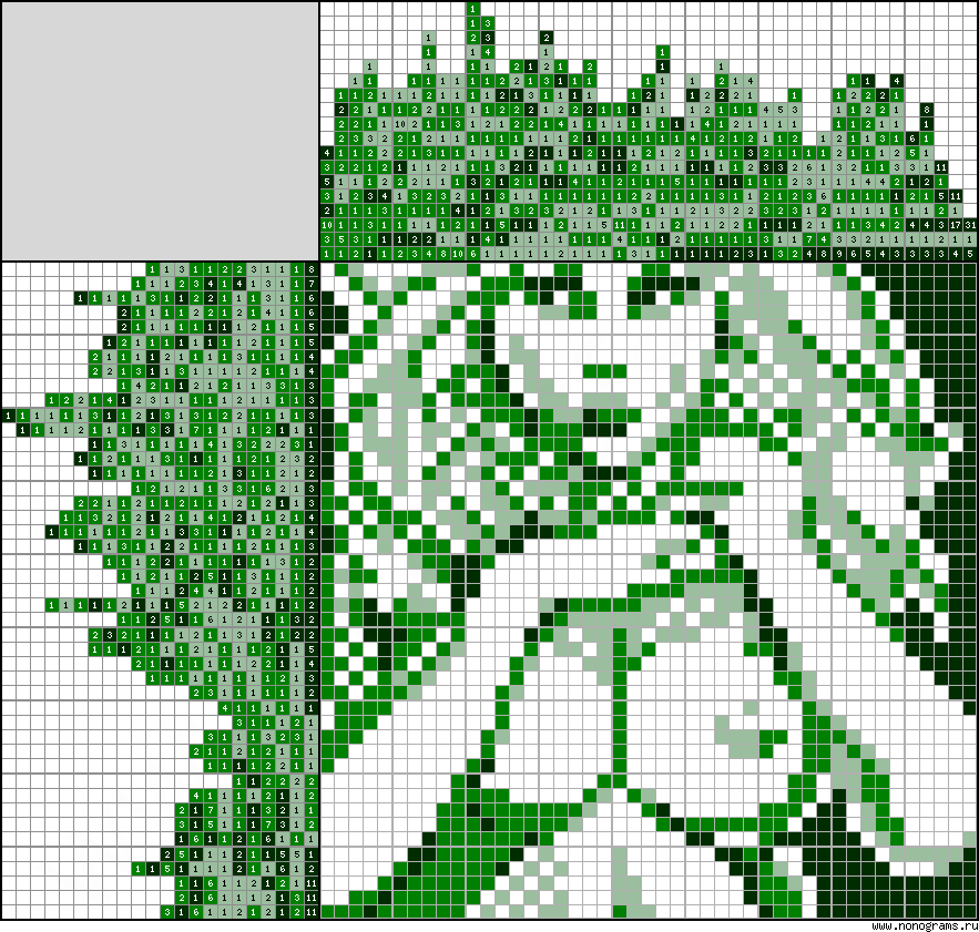 ответитьИ очень впечатлило, как Вы, с помощью всего трех вариаций одного и того же цвета смогли создать такое выразительное лицо и фигуру. И темно-зеленый фон не придает мрачности, а лишь оттеняет выразительность. Белые клетки обыграны просто виртуозно.