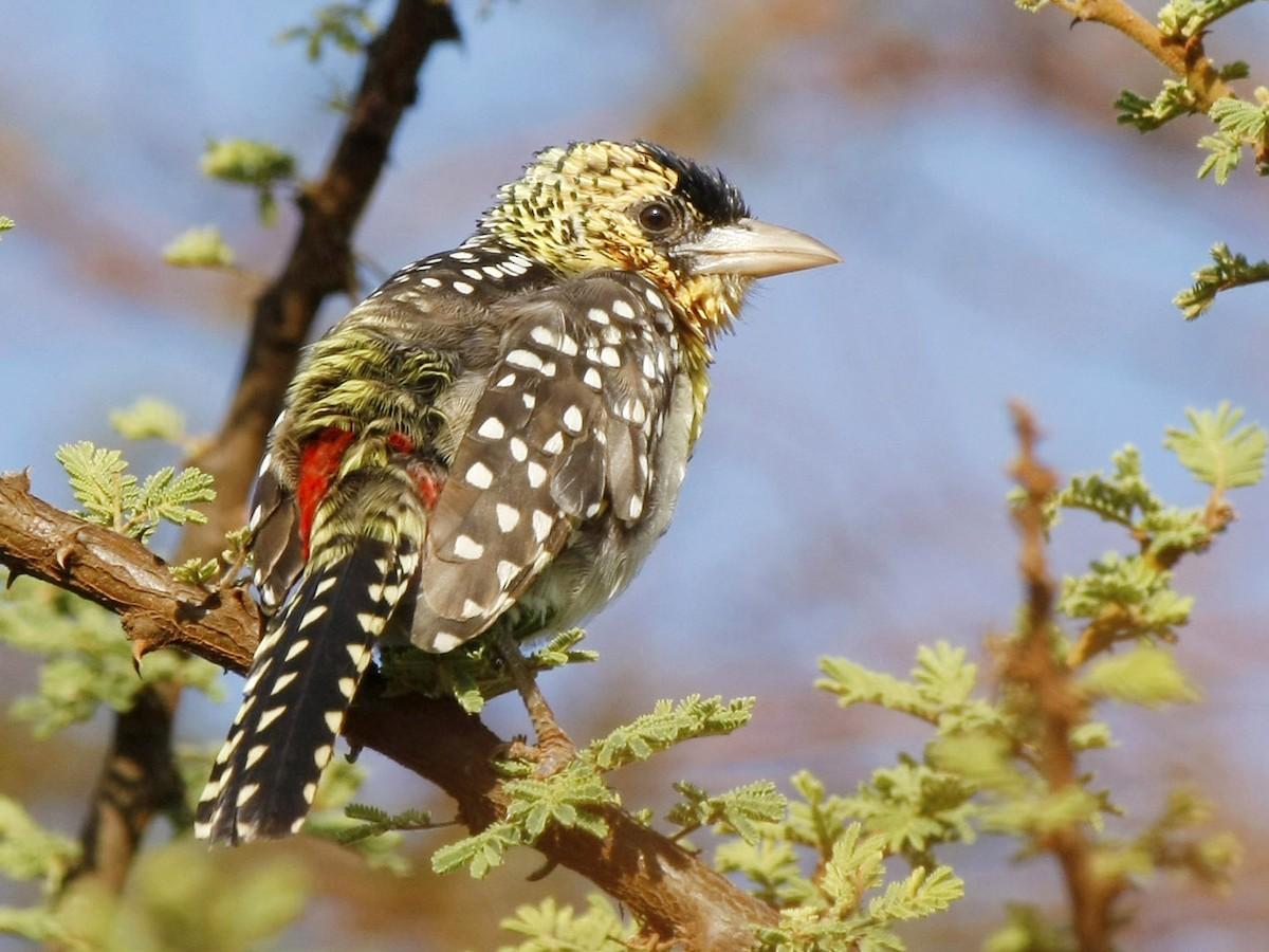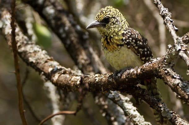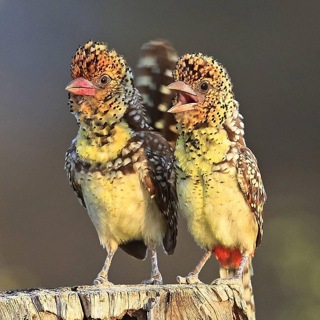 Пятнистоухий трахифонус – один 42 видов африканских бородаток. Трахифонусов выделили в отдельное подсемейство, называемое африканскими наземными дятлами, т.к. в отличие от большинства бородаток, обустраивающих свои гнезда на деревьях, трахифонусы гнездятся в изогнуто-вертикальных подземных туннелях, которые роют «собственноручно» («Собственнолапно»? «Собственноклювно»?)))