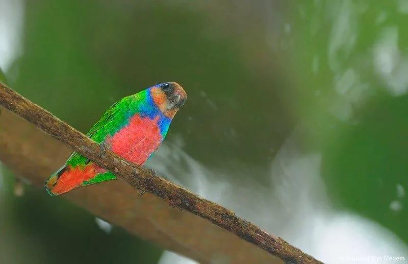 ответитьДятловые попугайчики Бруина (Краснозобые карликовые попугаи) обитают в Индонезии, Папуа-Новой Гвинее и на Соломоновых Островах. Попугайчики действительно карликовые – всего 9 см, и весят ок.15 г.Ну надо же – такой маленький, а уже такой разноцветный и красивый!