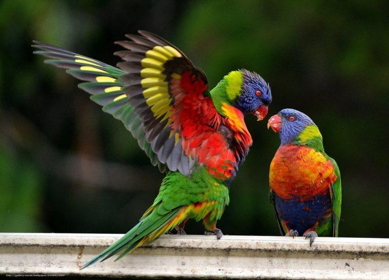 ответитьМногоцветный (радужный) лорикет – это небольшой (30 см) попугайчик, имеющий в своем оперении практически все цвета радуги.Замечательный портрет –