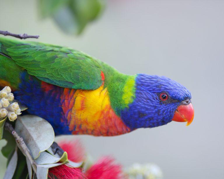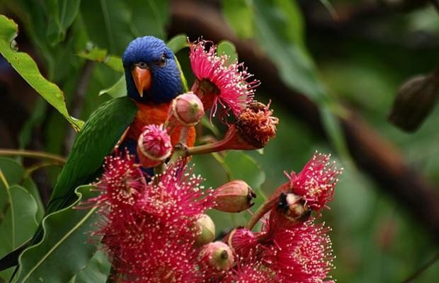 В Тасмании, например, стайки этих попугаев являются местной достопримечательностью: каждый день тысячи радужных птичек прилетают в одно и то же место полакомиться нектаром.