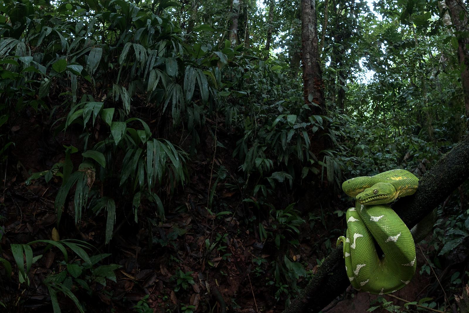 Охотится ночью, в основном на древесных крыс. Но не откажется и от птички или летучей мыши. Добычу обнаруживает благодаря чувствительным к теплу ямочкам (улавливают разницу в 0,026 °)
