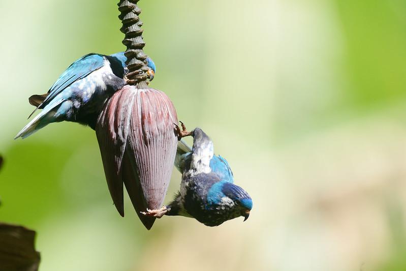 Держатся парами или группами до 12 птиц на верхушках цветущих деревьев.
