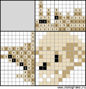 ответитьБольше на жука или даже на призрака похоже. А по большому счёту - картинка с таким многообразием,чередованием,пестротой элементов - будь она по больше (увеличьте количество Dot-Per-Inch) - будет и смотреться понятнее и не столь занудно по одной клетке закрашивать.