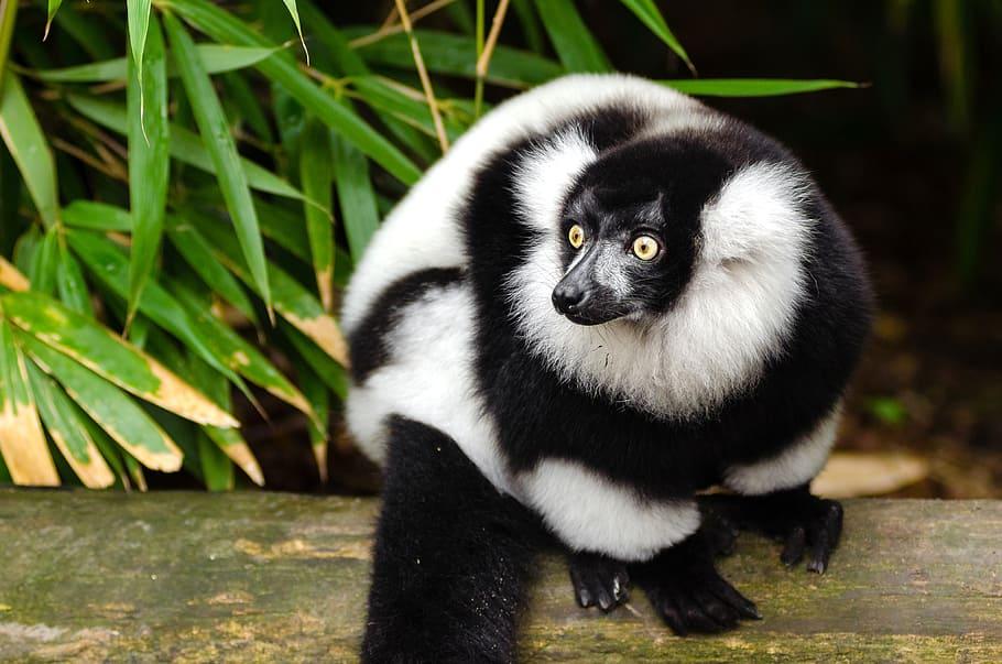 Большая часть тела ЛВ окрашена в белый цвет, а живот, хвост и мордочка - чёрные.Морду обрамляют пушистые белые бакенбарды – это отличительная особенность вари.Шестой уже лемур – ну один другого красивее и интереснее!