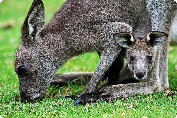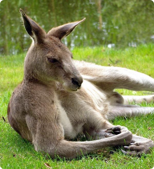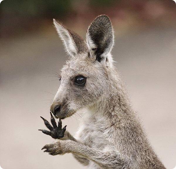 Гигантский (или восточный серый) кенгуру живет на востоке и юге Австралии и на Тасмании. Вырастает до двух метров плюс 1,2 м хвост.Такая милая и серьезная мордаха!