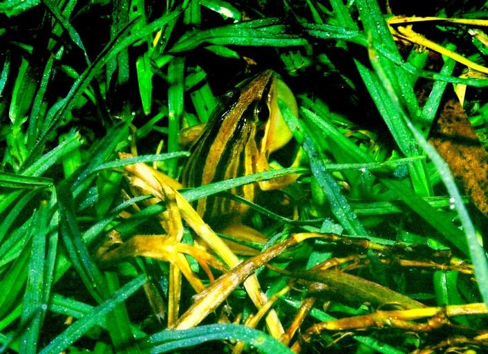 Полосатая Лягушка (она же - полосатая речная лягушка, полосатая травяная лягушка, полосатая рана, полосатая длиннопалая лягушка, длиннопалая травяная лягушка – уф, прямо как матерый уголовник!))) - эндемик юга Африки.Везет сегодня на полосатых – сначала тенрек, теперь лягушка))