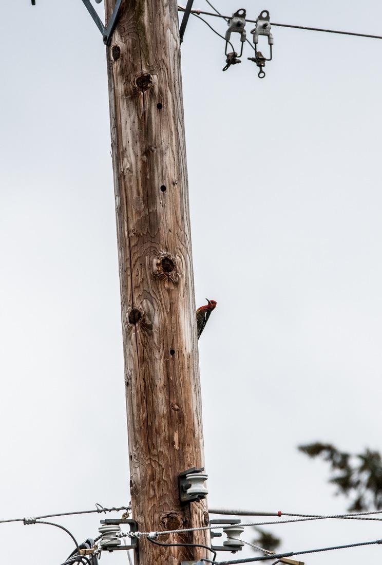 Часто эти дятлы устраивают гнезда и в опорах, чем сильно вредят линиям связи