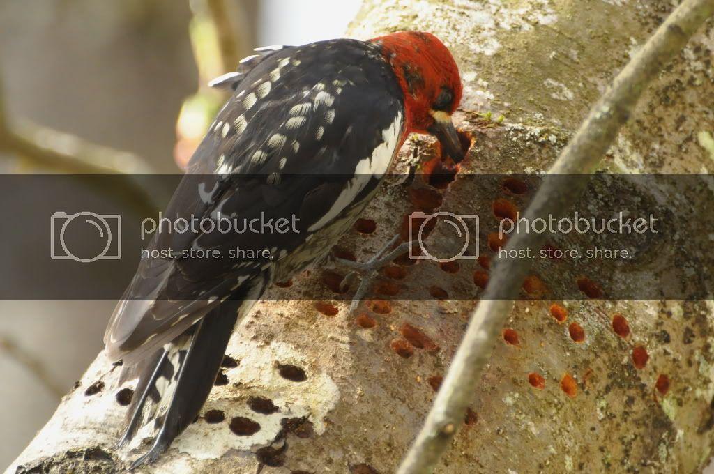 А это птичка непосредственно за трапезой. Дырочки в стволе видите? Так это не дрель и не пулеметная очередь...