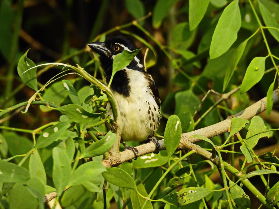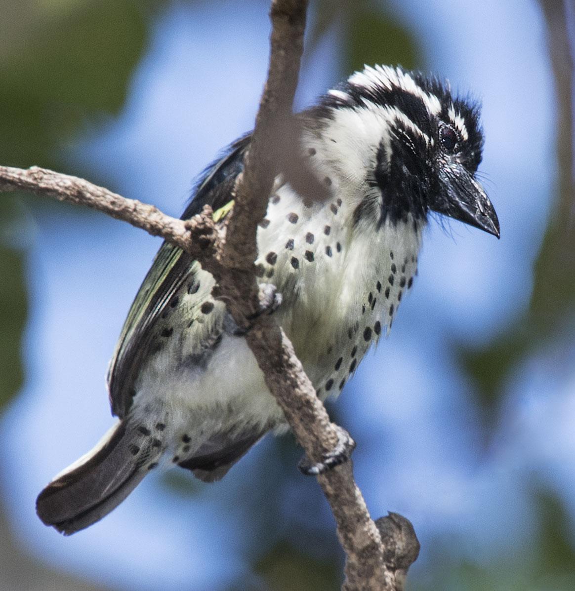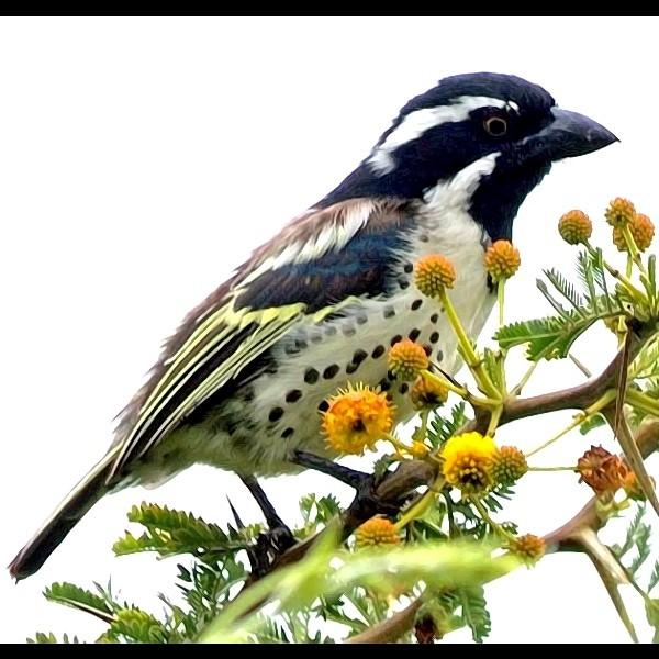 Плачущая Либия (пятнистая бородатка) – маленькая пухленькая черно-белая бородатка с большой головой ок. 14 см длины.Вроде и цветов немного, и неяркие. А птаха получилась такая элегантная, филигранно сделанная.