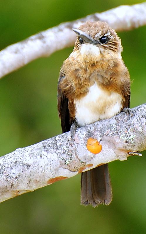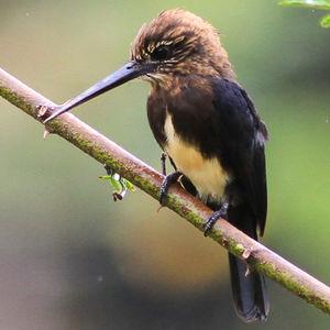 Научное название Бурогорлой Брахигальбы - Brachygalba lugubris – означает:Очень официально-парадно-нарядная получилась птичка.