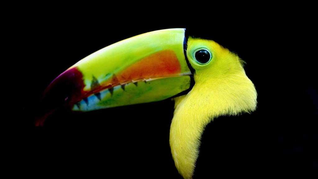 РТ - представитель самого крупного семейства дятлообразных(до 55 см) - обладает примечательной внешностью.Больше всего в глаза бросается огромный (до 17 см), ярко окрашенный клюв птицы. Со стороны клюв может показаться довольно массивным, однако, на самом деле это совсем не так. Клюв очень легкий, так как внутри него пустота.Да, палитра богатейшая. И если такая "пташка" живет дома - будет каждодневно радовать глаз.
