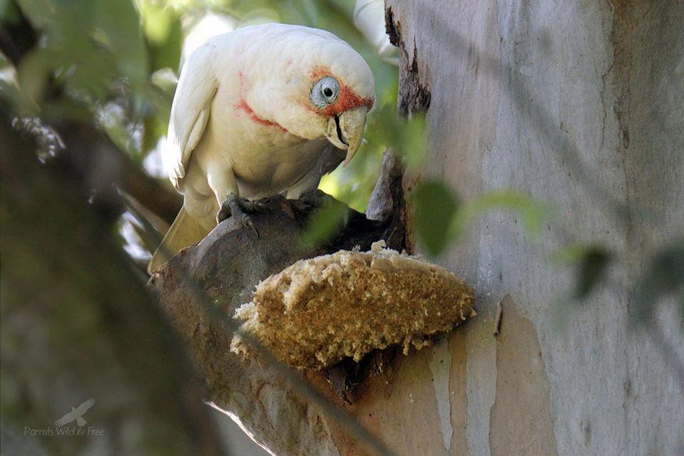Клюв более длинный и тонкий, чем у сородичей (длина больше высоты только у НК), прекрасно приспособленный к выкапыванию корней и луковиц. Попугаи просто «перепахивают» им почву. Особенно при массовых налетах на поля зерновых. Причём они выработали определённую схему - два-три попугая сторожат поле, и в случае опасности с диким визгом взмывают в небо, давая таким образом сигнал своим товарищам.