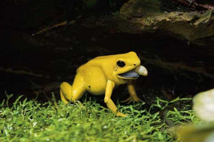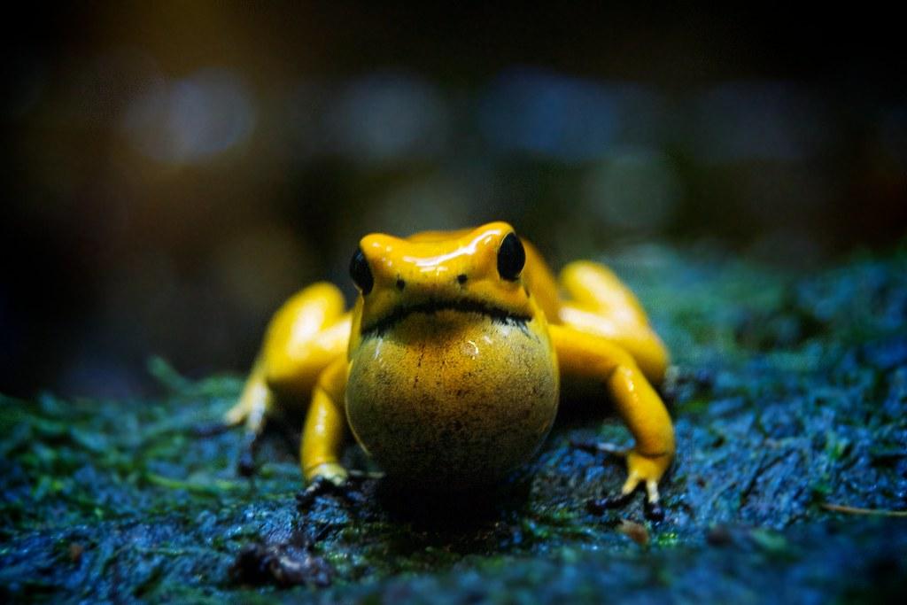 Во влажных лесах Колумбии обитает миниатюрная 4-см лягушка, которую называют ужасным листолазом (или золотой ядовитой лягушкой) и которая претендует на титул самого ядовитого позвоночного на планете.Просто замечательное сочетание ярко-желтого с яркой зеленью!