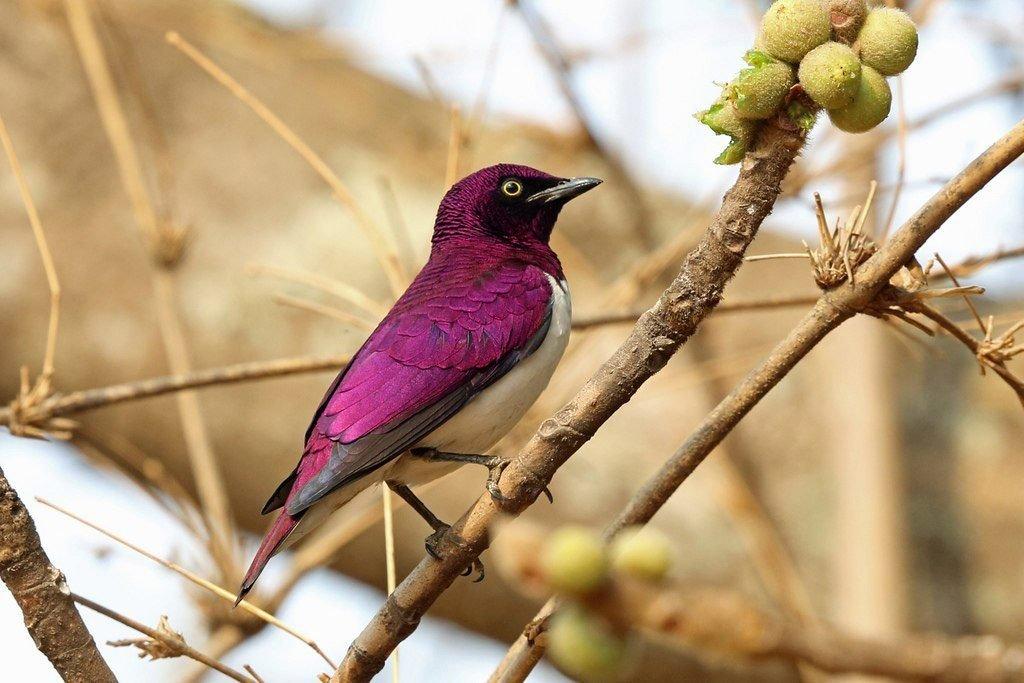 Всю свою жизнь аметистовые скворцы проводят на деревьях, и увидеть их на земле – большая редкость.