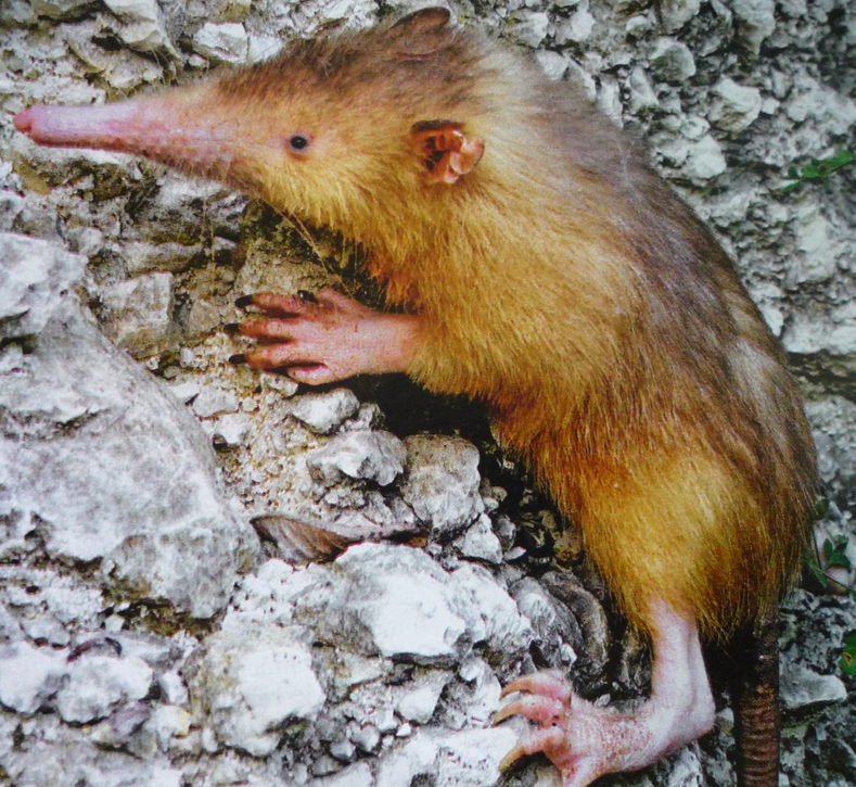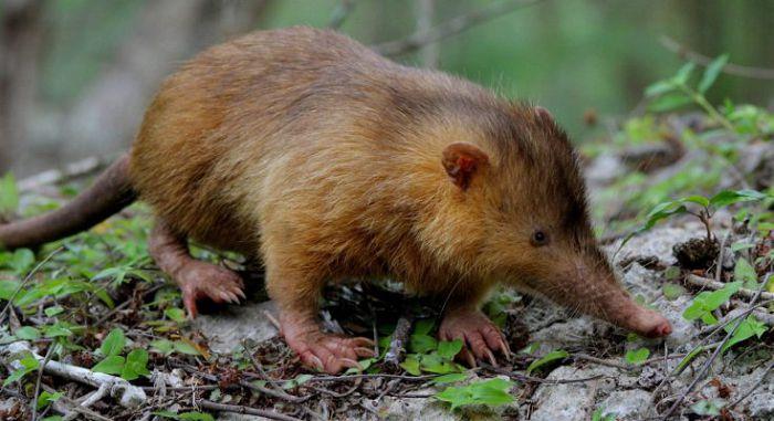 ответитьЗнакомьтесь: гаитянский щелезуб, он же соленодон, эдарас, такуахе или ядовитая слономышь. Уникум во всех отношениях. Во-первых, редкий. Во-вторых, ядовитый. В-третьих - ровесник динозавров.Не самое симпатичное, но о-о-очень интересное животное!