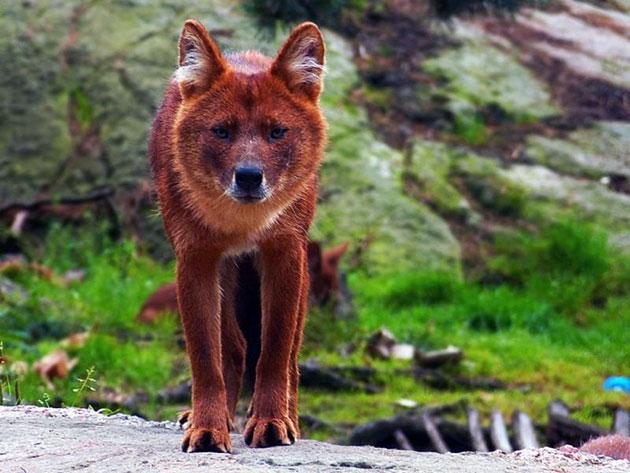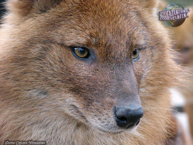 КВ — очень интересное животное, похожее одновременно и на серого волка, и на лисицу, и на шакала. У него длинный хвост — до полуметра, а тело и больше метра бывает, но весит он не много — чуть больше 20 кг. Сравните с сибирским или полярным волком, весящим до 90 кг! Такой тяжеловес наверняка упал бы с первой же скалы. А шерсть у КВ такая же густая и длинная, огненно-рыжая на боках и на спине, а на животе и на груди - кремовая. Очень красивое животное! Хвост — как у лисицы, только темнее. На голове чёрным контуром обведены нос и глаза, как у шакала. И только размерами — чисто волк.