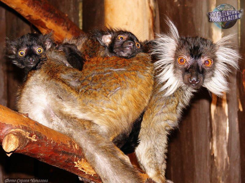Самцы черного цвета, а спина и конечности самок коричневато-каштановые, живот светлее. Голова и морда темно-серые. У обоих полов из ушей торчат кустистые пучки шерсти: у самок — белые, у самцов — черные.