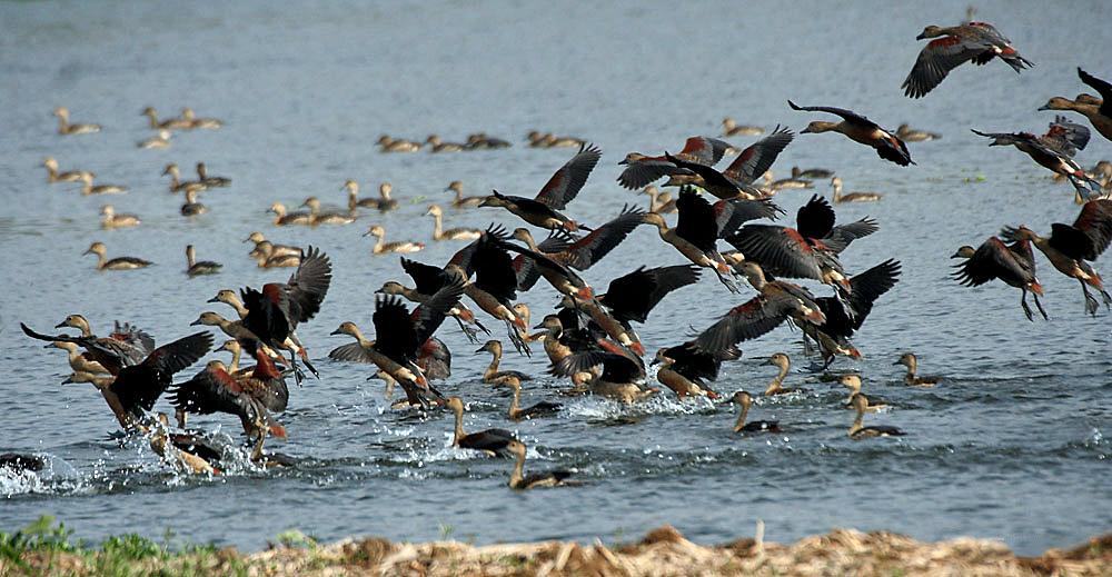 Древесные (свистящие) утки получили свое название за привычку сидеть на ветвях и за очень отчетливый свистящий звук, издаваемый их крыльями в полете (благодаря особому строению маховых перьев).Наконец-то утка, которая-таки и плавает, и ныряет!))