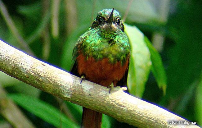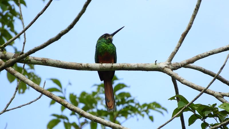 Ее латинское название - Galbula tombacea. «Гальбула» означает «маленькая желтоватая птичка», а «томбак» по-французски - «коричневый» или «медный»