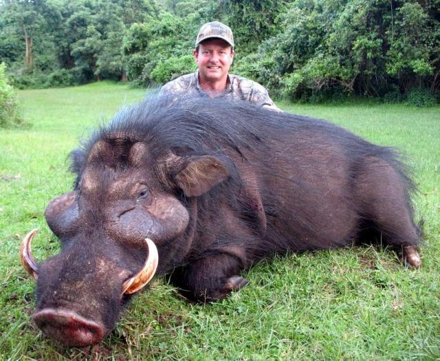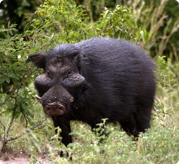 БЛС – самые здоровенная из всех свиней. Зверюга размером 2,1x1,1 м, пятачок 16 см в диаметре. Морда длинная, «скуластая», клыкастая, под глазами – внушительные бородавки. Они защищают глаза от колючих веток, а у самцов - и во время поединков. Из толстенной кожи БЛС некоторые африканские племена до сих пор изготавливают щиты.Так вот ты какой, «Кабан Полтинник!»))