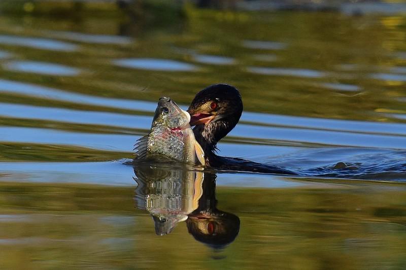 Питается в основном небольшой рыбой, лягушками, моллюсками, крабами и личинками стрекоз и жуками. Предпочитает мелководье, хотя может нырять довольно глубоко и находиться под водой до 45 сек.