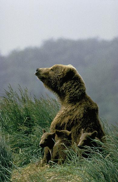 До весны мамаша кормит их молоком и за этот период так сильно теряет в весе, что когда приходит время покинуть берлогу, она едва держится на ногах.