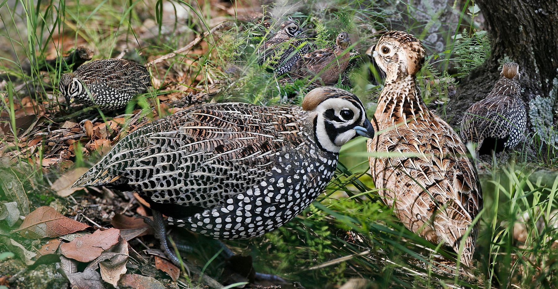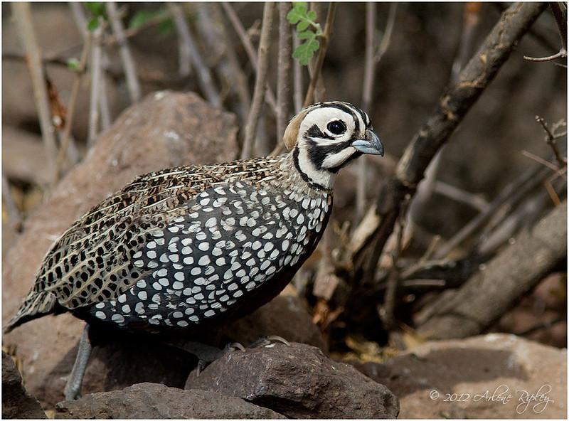 ПП (перепел-арлекин - из-за яркого рисунка самца или перепел-дурак - из-за его поведения). обитает в Ц. Америке - Мексике, Сальвадоре, Гватемале, Гондурасе, Мексике и Никарагуа и на юге СШАУзор из перьев удался просто замечательно!