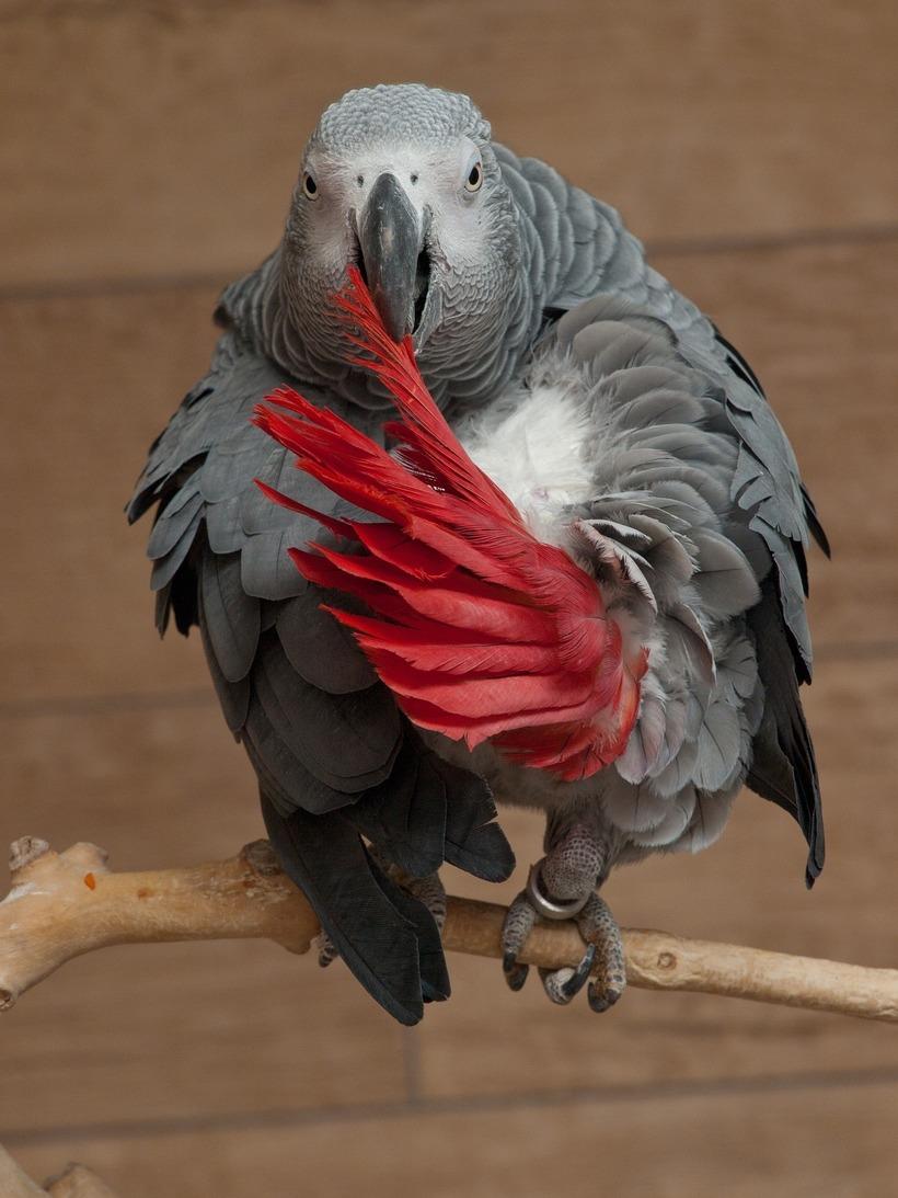 КЖ – очень красивые попугаи и одни из самых умных. Они не такие красочные и разноцветные, как например ара - оперение представлено только двумя основными цветами: пепельно-серым и пурпурно-красным на нижней части хвоста - но зато считаются самыми интеллектуальными птицами в мире.- Попка xоррроший, xозяину вкусняшку принес!
