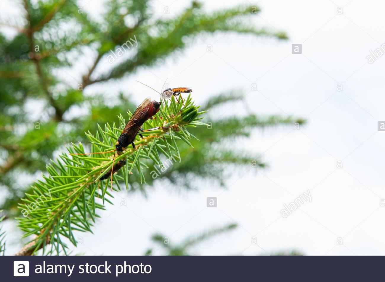 Тело самки заканчивается длинным яйцекладом. Его створки усажены насечками как рашпиль - ими самка "пропиливает" в древесине (ели, пихты, сосны, лиственницы) ход до 2 см, в который откладывает яйцо.