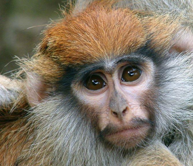 МГ (красная мартышка) - довольно крупная (до 90 см плюс макой же длины хвост) изящного сложения обезьяна.Получилось очень красиво, выразительно и даже эмоционально.