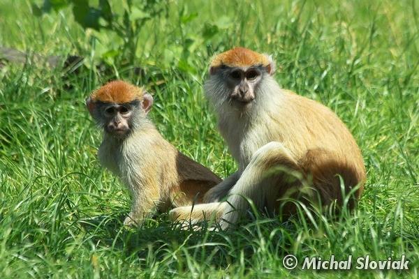 1-3. Вожак отвечает за то, чтобы вовремя заметить любую приближающуюся опасность : леопардов, гиен и пр. Он поднимается на ноги и выглядывает из высокой травы, или взбирается на дерево, чтобы осмотреть. Если самец хищника, то издаёт нежные, щебечущие звуки, которые тут же настораживают всю группу. Обезьяны бесшумно прячутся в траву, в то время как вожак совершает отвлекающие манёвры: с шумом прыгает на ветках, а потом бросается в направлении, противоположном тому, в котором укрылись самки и детеныши, уводя врагов за собой.