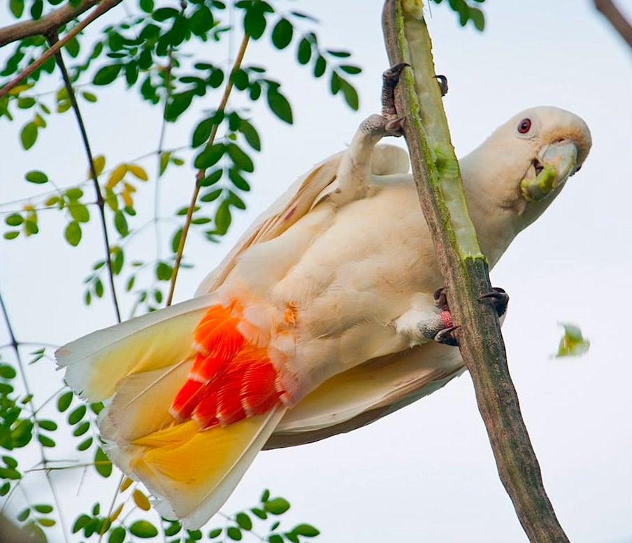 ФК (краснохвостый какаду) водится только на Филиппинах. Покрытая белым оперением, с ярко-красным и желтым подхвостьем и бледно-розовыми «щечками», эта потрясающая птица пользуется большим спросом у любителей домашних животных. Браконьерство, продажа и покупка ФК, а также уничтожение среды обитания резко сократили их численность.Чудесное белое облачко! И здесь белый фон действительно рулит))