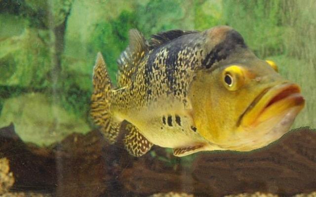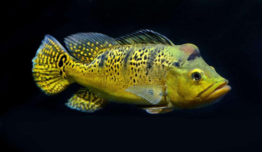 От других цихлид отличается маленькими светлыми пятнами на нижних плавниках. У основания хвостового плавника - крупное пятно в золотистом ободке. За такую раскраску получила русское название «павлиний окунь»