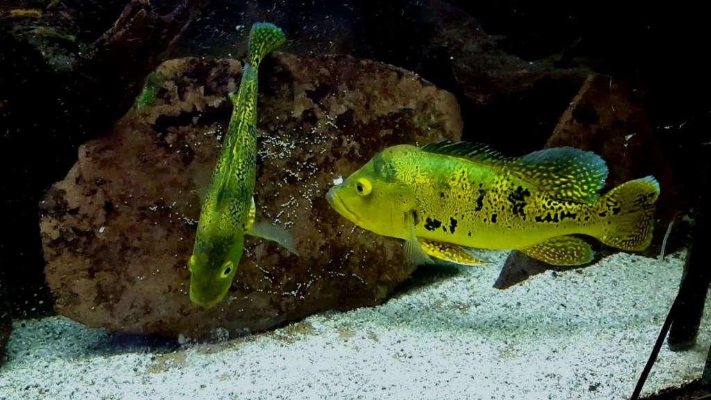 Проклюнувшиеся мальки первое время находятся во рту своего родителя, а когда окрепнут, начинают плавать под бдительным присмотром обоих родителей.