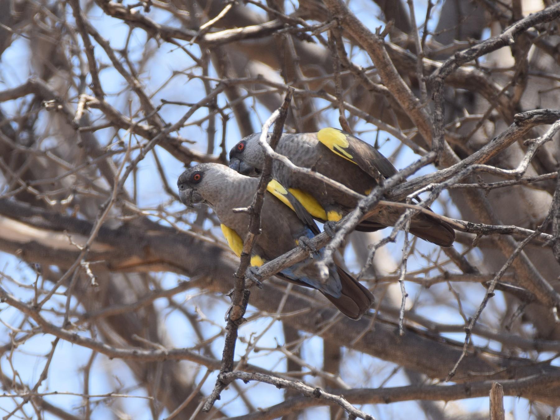 ДПР обитают на юге Анголы и в Намибии.Этот попугай не такой яркий и красочный, как другие, но его оперение очень строго и элегантно.