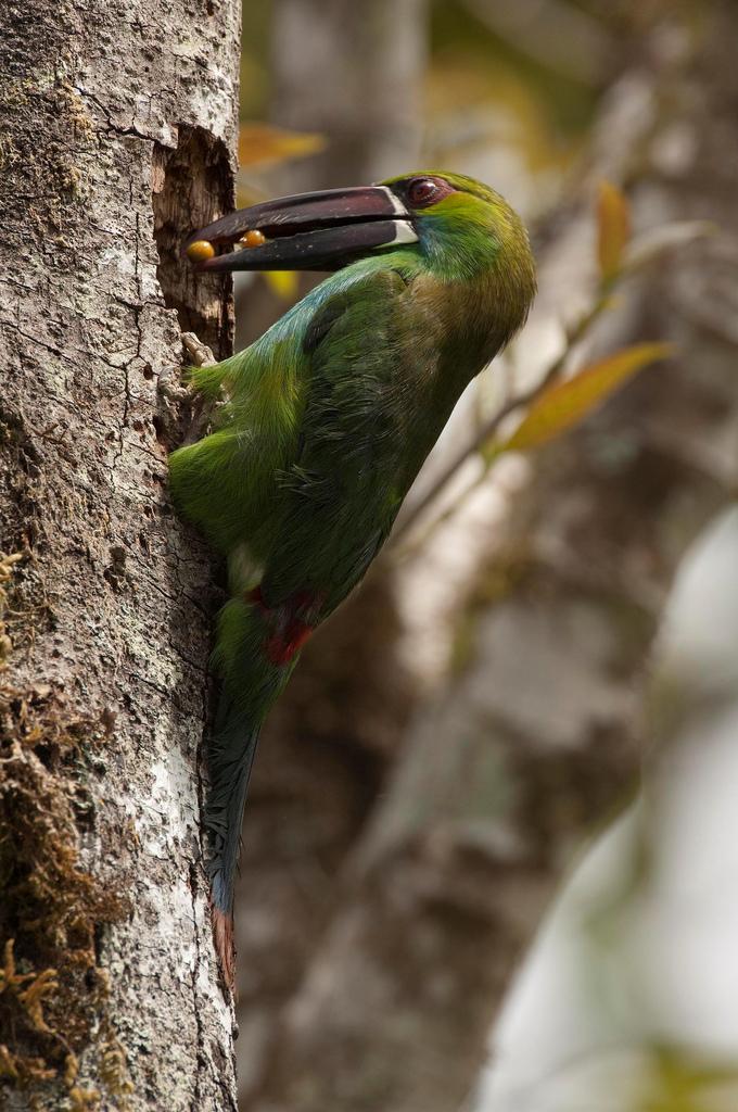 Питаются в основном фруктами, в поиске которых по спирали спускаются вдоль ствола дерева.В период размножения поедают насекомых, мелких рептилий и даже подворовывают яйца и птенцов более мелких птах.