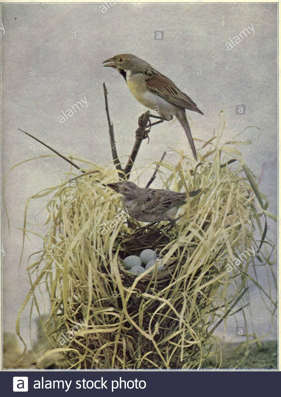 Гнездо (построенное самкой) представляет собой большую открытую чашу из травы и листьев, выстланную мелкой травкой, корешками, иногда шерстью животных. Располагается гнездо обычно на земле, в кустах или невысоко на деревьях и хорошо скрыто за густыми зарослями травы, сорняков, люцерны, клевера или других растений.