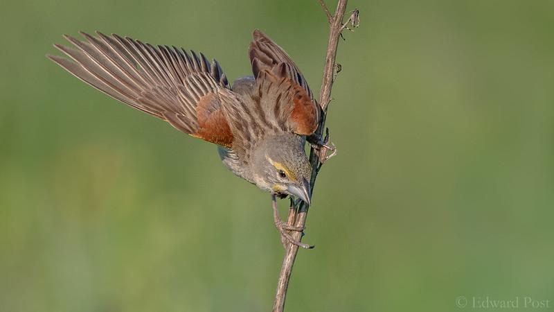 5-6. Летом на Среднем Западе пение самцов раздается отовсюду - со столбиков забора, проводов, или стебльков травы в прериях или на полях.