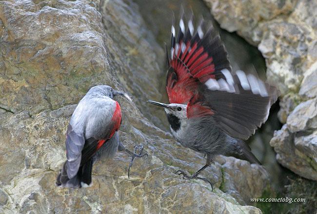 5-8. При добывании корма С. использует следующую тактику: поднимается по отвесной стене маленькими неровными скачками снизу вверх, помогая себе сильными когтями и ритмичными движениями крыльев, на ходу обследуя клювом трещинки в поисках бабочек, мух, пауков, жуков и пр. Затем опускается к основанию скалы, устремляясь вниз со сложенными крыльями, смягчая падение тем, что периодически резко раскрывает крылья.
