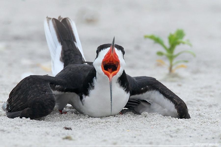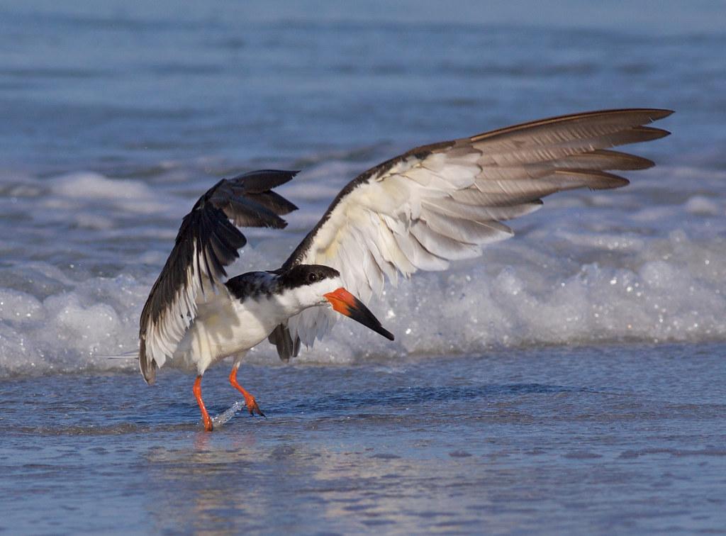 ... Водорез летает с раскрытым клювом над самой водой — отсюда его название. Его длинная нижняя челюсть вспарывает поверхность воды, как лезвие ножниц вспарывает ткань, и птица зачерпывает челюстью мальков и прочую живность, составляющую ее пищу. Будь обе половинки клюва одинаковой длины, этот трюк не так легко бы ей удавался, а потому природа заботливо убрала лишнюю часть клюва.