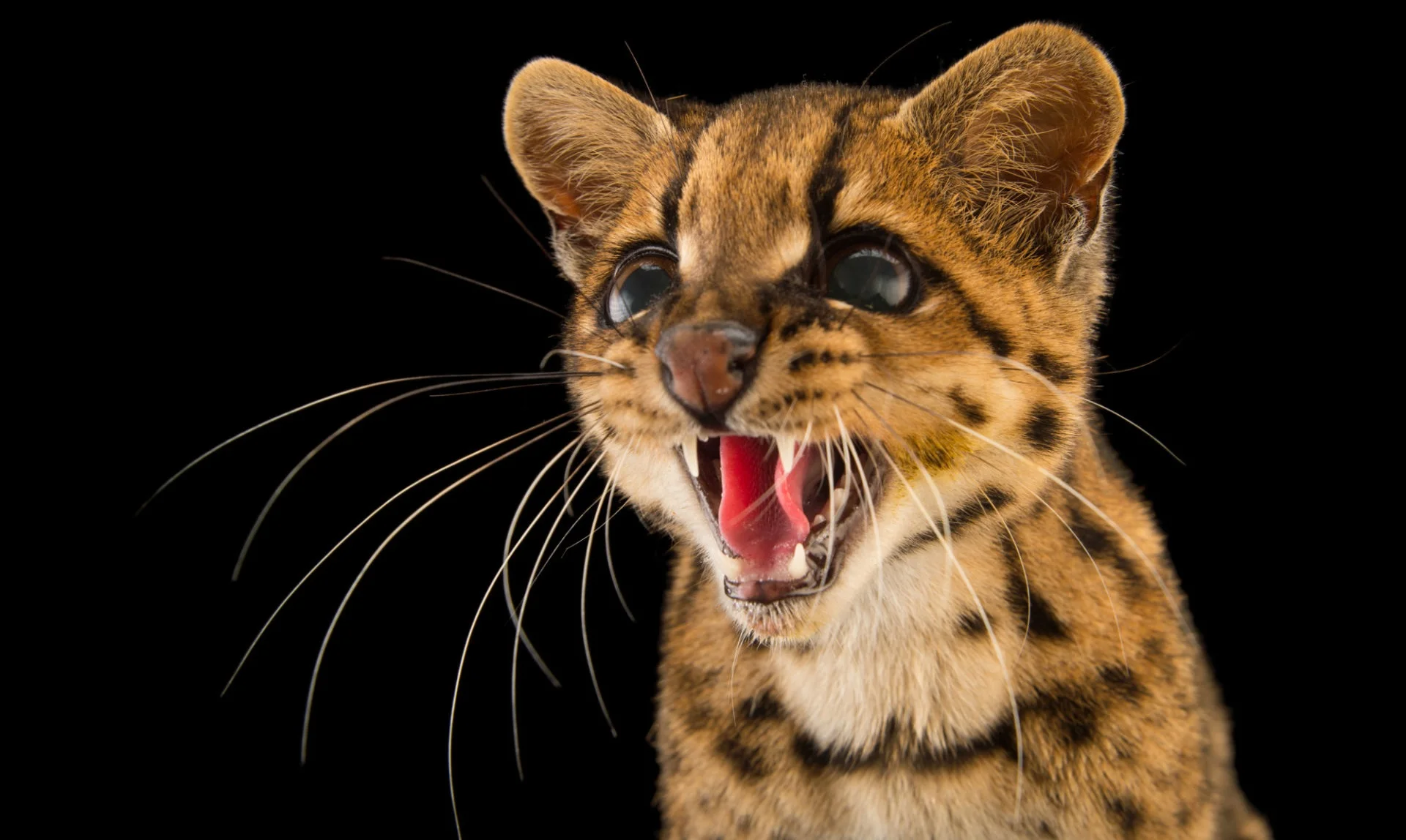 Маленький ягуар - так называют этого представителя семейства кошачьих - не только из-за окраса, но и из-за любви к водным процедурам. А еще называют малой пятнистой или тигровой кошкой.Милая кисуня!