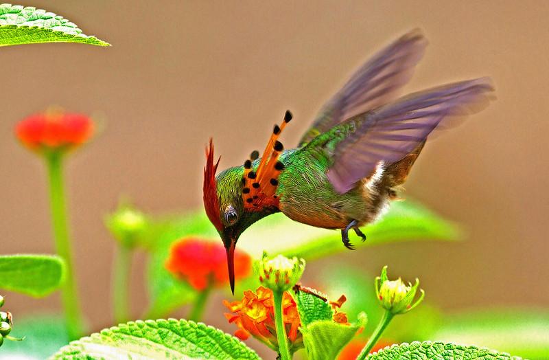 6. Интересно, что среди всего многообразия тропической растительности ЦК выбирает те цветы, которые опыляются насекомыми или другими животными, но не колибри. Особенно любит нектар цветов тюльпанового дерева и голубиного гороха.
