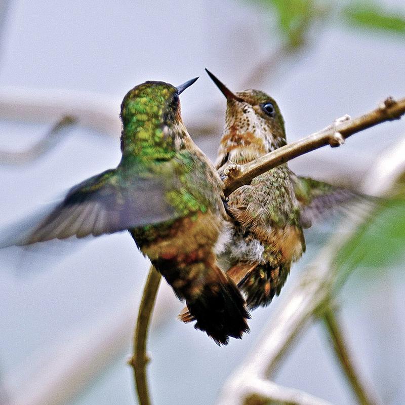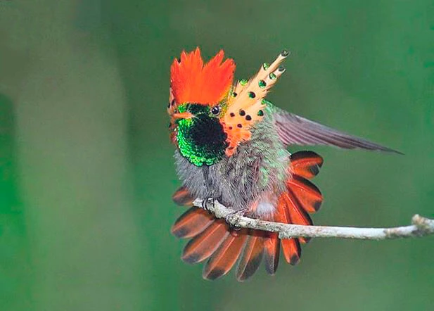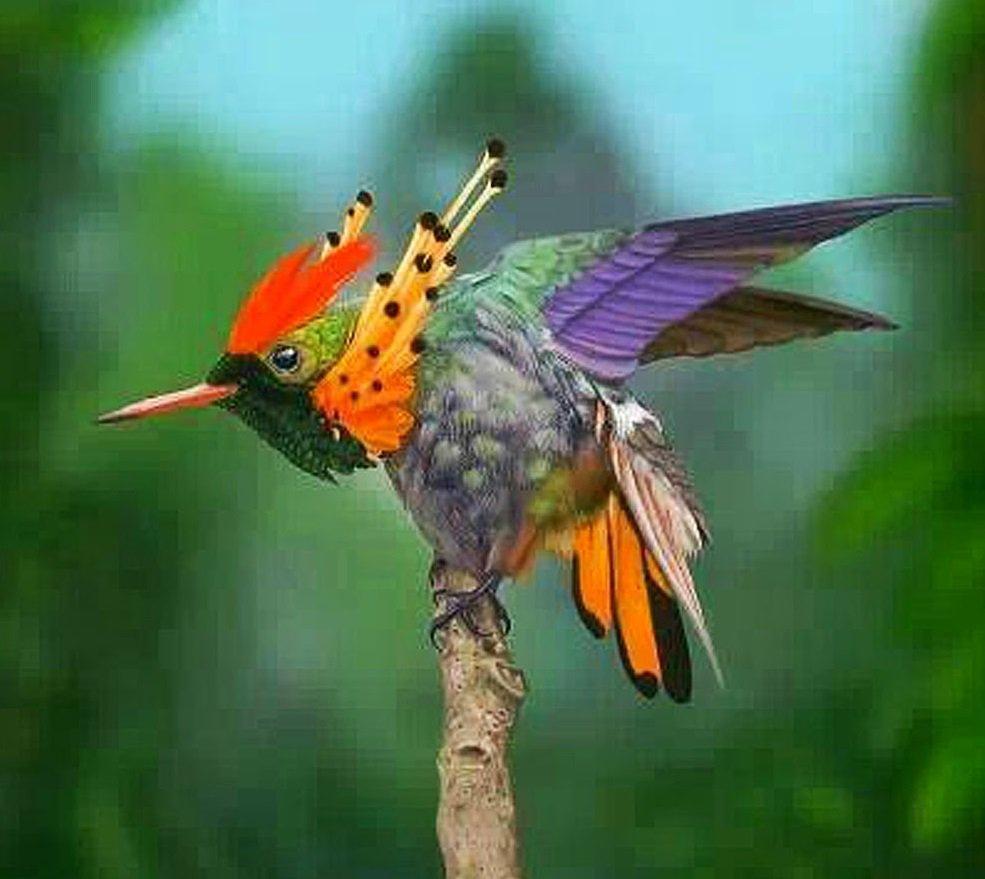 Свое оригинальное название УК (или эльф) получили благодаря яркому оперению. Пестрый оранжевый хохолок и пышные бакенбарды с черными пятнышками на концах – вот визитная карточка маленьких кокеток. Причем всю эту красоту имеют только самцы, самки гораздо более невзрачны.И по колибри тоже успели соскучиться.