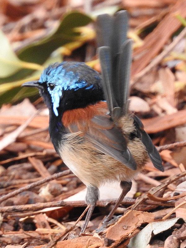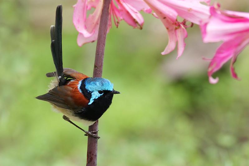 В ритуал ухаживания входит подношение самочкам разноцветных лепестков (чем не конфетно-букетный период?))), а также демонстрация красивого синего оперения.
