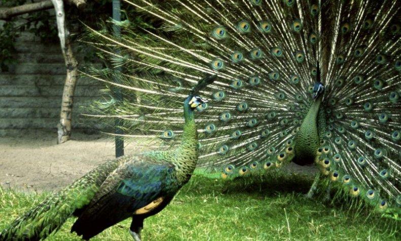6. Самцы очень агрессивны не только по отношению к другим павлинам и прочим фазановым, но могут кидаться и на людей, нанося опасные раны острыми шпорами, особенно если решат, что их самкам угрожает опасность. В связи с этим разведение этих птиц в неволе является весьма хлопотным и проблематичным занятием. Хотя в зоопарках ЗП охотно размножаются